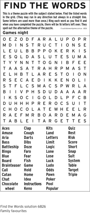 A daily wordfind with a new subject for each puzzle. Circle each word as you find it listed in the grid. Words may run in any direction, but will always be in a straight line. Keep in mind that one letter may be use multiple times.